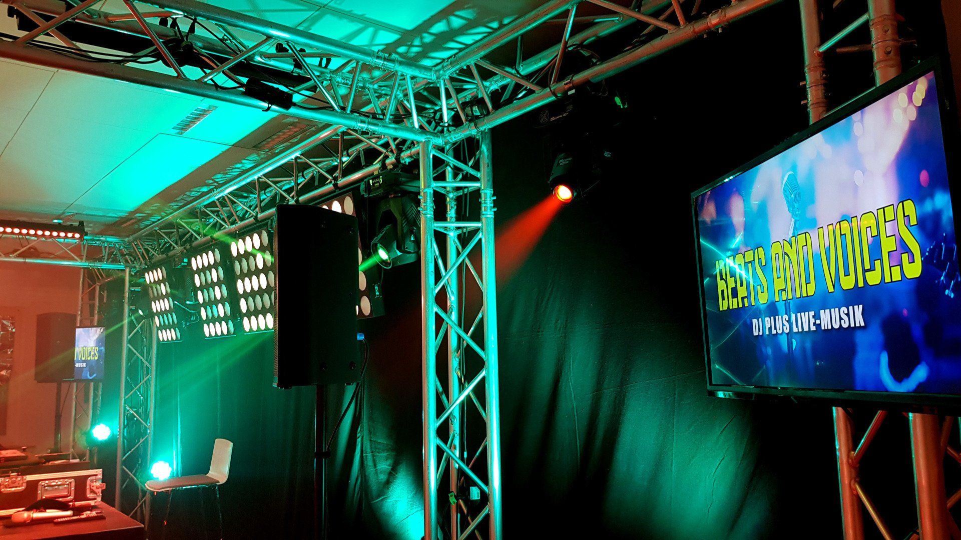 Wenn Sie wünsche, bieten wir den Fullservice gleich mit an. Bühnen, Lichttechnik, Tontechnik für die Bühne und ein tolles Ambietenlichtpaket für Ihre Location. Alles ist möglich. Wir beraten Sie gern und stellen je nach Budget ein passendes Technikpaket zusammen.